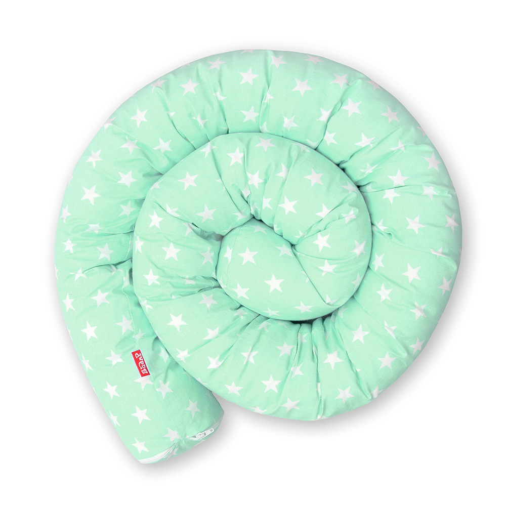 Rácsvédő hengerpárna, zöld-fehér, csillagos mintával.