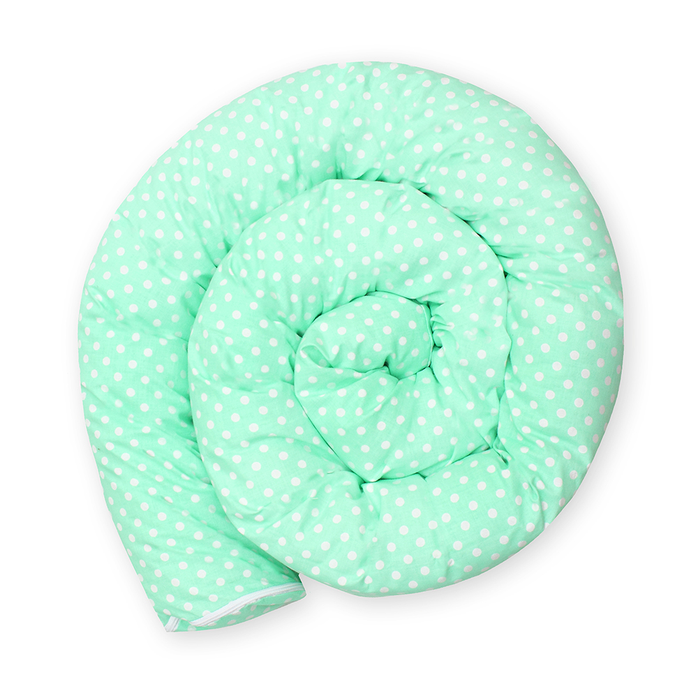 Rácsvédő hengerpárna, zöld-fehér, pöttyös mintával.